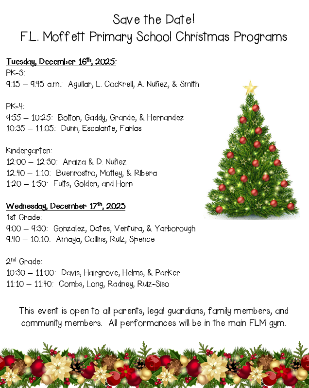 F.L. MOFFETT PRIMARY SCHOOL 294 Stadium Drive Center, Texas 75935